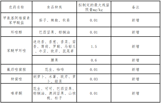 2023年8月22日,巴西国家卫生监督局(ANVISA)发布1195号公共咨询 ,拟制订部分食品中甲氨基阿维菌素苯甲酸盐等农药的最大残留限量,部分限量见下表,该咨询 意见反馈期截至2023年10月21日。