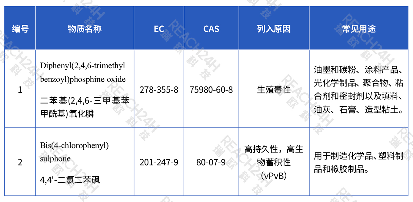 新增 2 个SVHC物质如下: