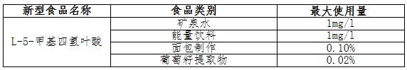 2023年11月29日,欧洲食品安全局(EFSA)发布10.2903/j.efsa.2023.8417号 ,拟批准L-5-甲基四氢叶酸作为新型食品,具体使用要求如下表。该 将于欧盟官方公报正式发布之日起生效。