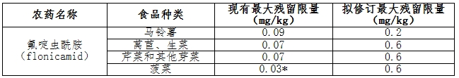 (2)部分食品中氟啶虫酰胺的最大残留限量修改如下:
