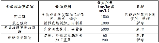 2024年3月12日,巴西国家卫生监督局(ANVISA)通过政府公报发布IN No 286号指令,修订食品添加剂使用标准法规(即IN No 211号指令)。具体内容为:(1)修订食品乳化剂定义,即加入食品中起到重新排列蛋白质以避免脂肪分层作用的食品添加剂;(2)新增部分食品中丙二醇等多种食品添加剂的使用要求,部分见下表。该指令于2024年4月1日起生效,过渡期18个月。