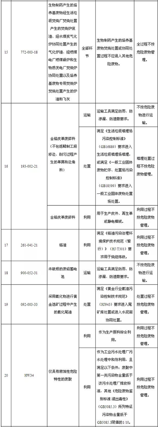 5.“豁免条件”指可不按危险废物管理应具备的条件;