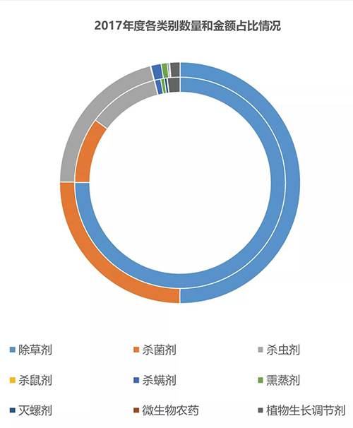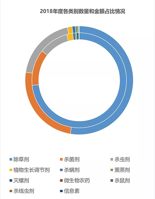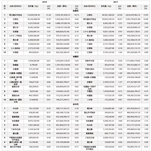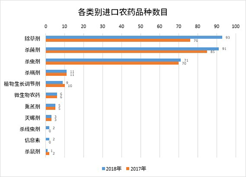 新增加的农药品种/混剂组合中,有17个除草剂,6个杀菌剂,1个杀虫剂,2个杀线虫剂,2个信息素品种的进口,除草剂超越了杀菌剂,成为了进口品种最多的类别。