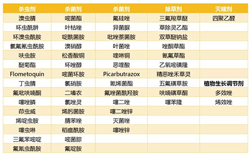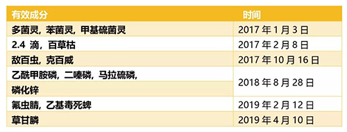 可以登记在水稻上的有效成分清单(截止至2019年6月)