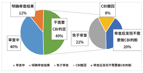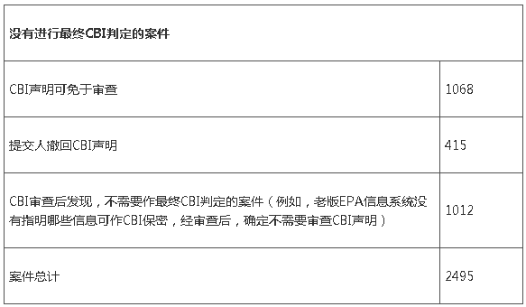 图2. TSCA法案改革3年来CBI审查案件,特别是不需要做CBI判断的案件统计