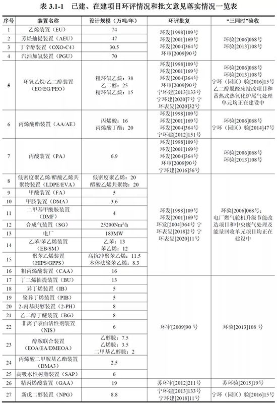 项目概况:在现有生产厂区内新建丙醛、丙酸、乙醇胺、乙烯胺、丙烯酸叔丁酯等5套生产装置,对精制环氧乙烷生产装置进行技改;新建8#循环水站、3个装置变电站及机柜间、3个装置罐区、1个中心装卸站、1个物流办公室,改建B900火炬,升级高压消防水系统,改造现有变配电站、控制室、管廊及储运系统等相关配套公辅设施。项目实施完成后,可实现丙醛产能7万吨/年、丙酸产能4万吨/年、乙醇胺产能5.5万吨/年、乙烯胺产能3.5万吨/年、丙烯酸叔丁酯1.2万吨/年、精制环氧乙烷产能扩建5万吨/年(扩建后达到到20万吨/年)。