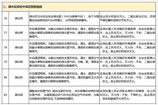湖北省应急管理厅曾组织有关单位梳理了遇水反应的危险化学品名单及应急处置措施共118条。